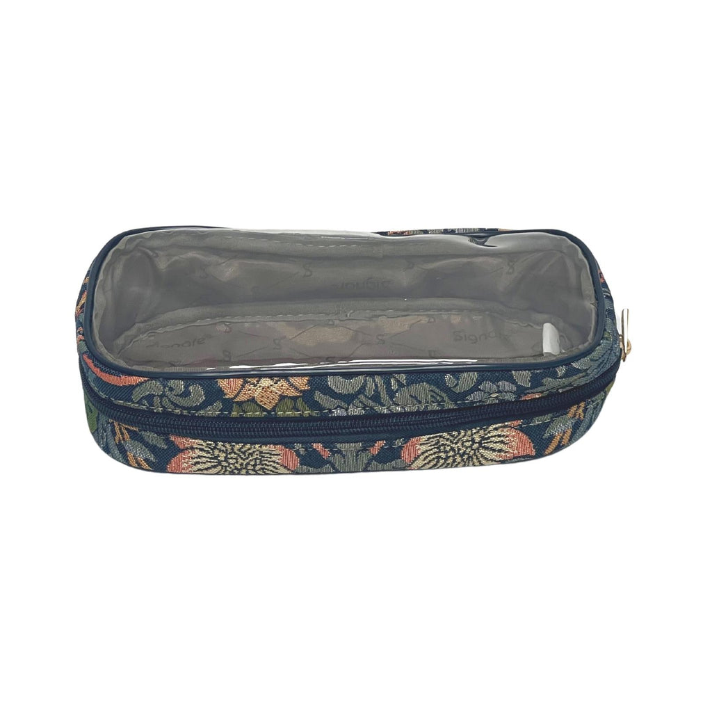 PRODUCT DESCRIPTION: Modern tapestry patterns take elegance and style to these fine-quality accessory bags. It has an all-around zipper closure for easy access and a clear window that gives you a view of the contents inside. Ideal for everything from makeup to hair care needs.