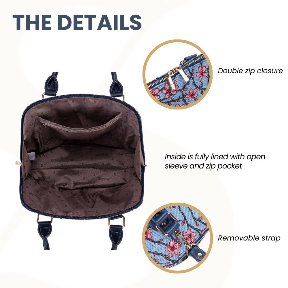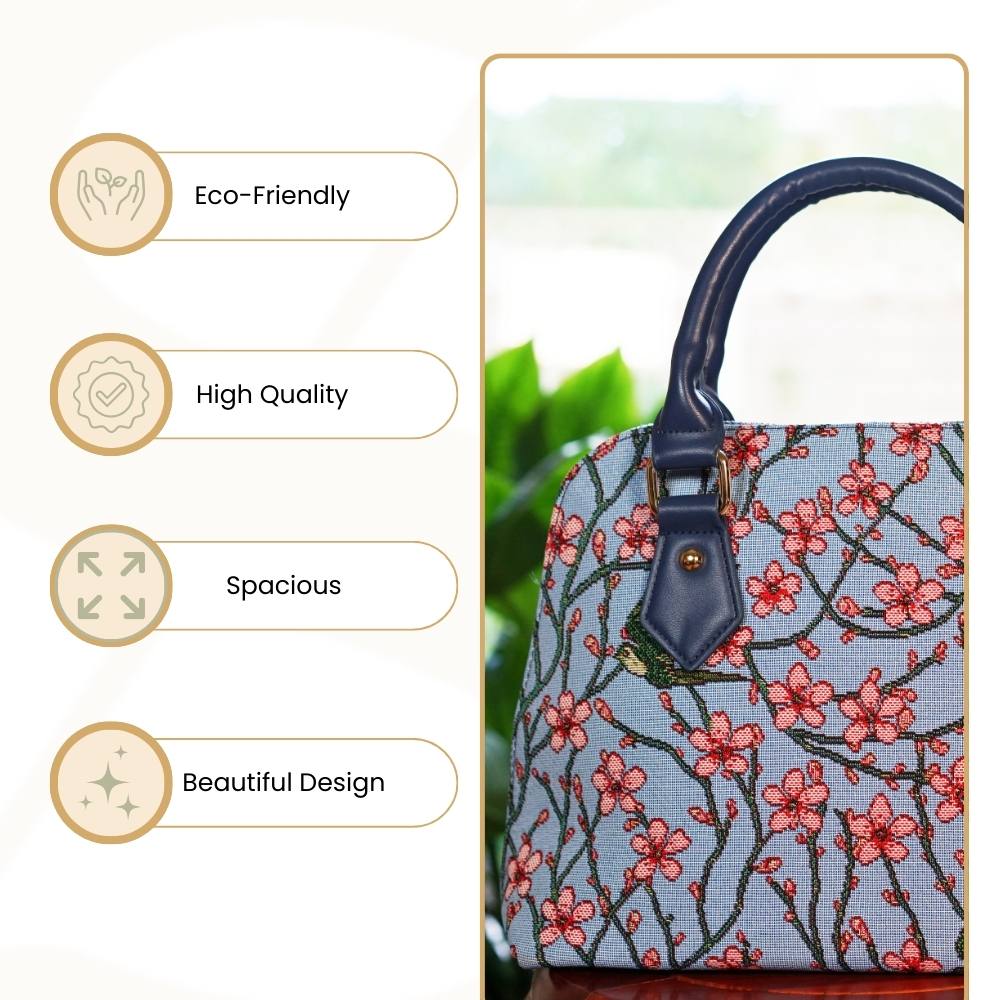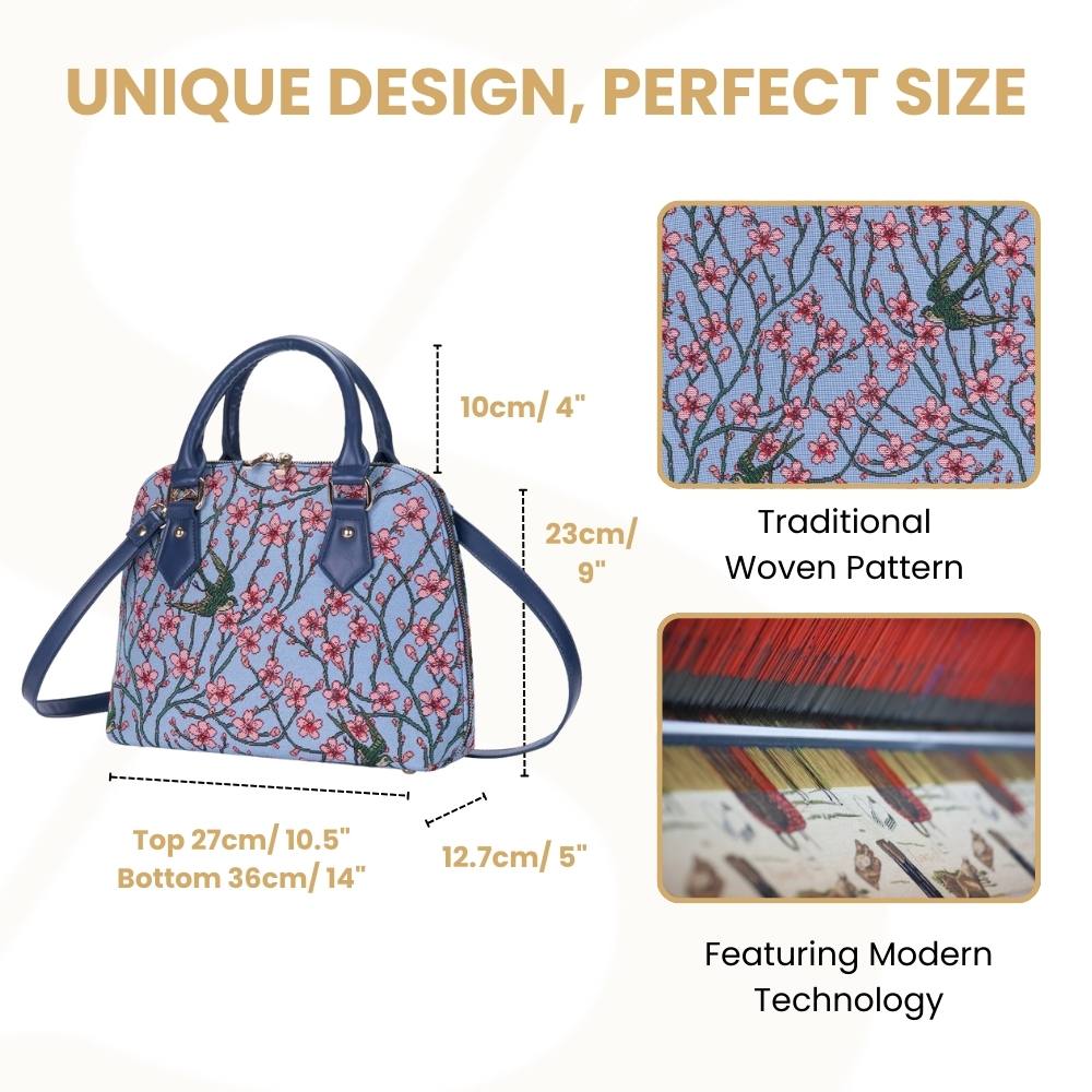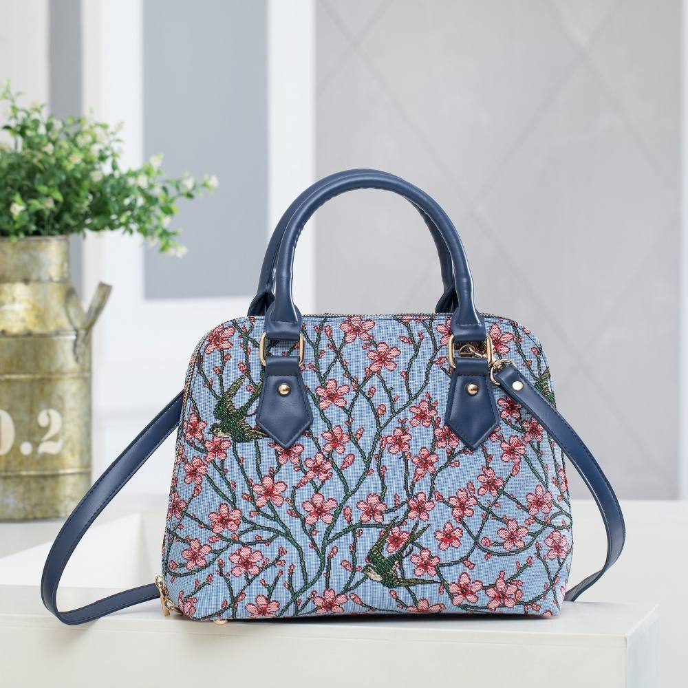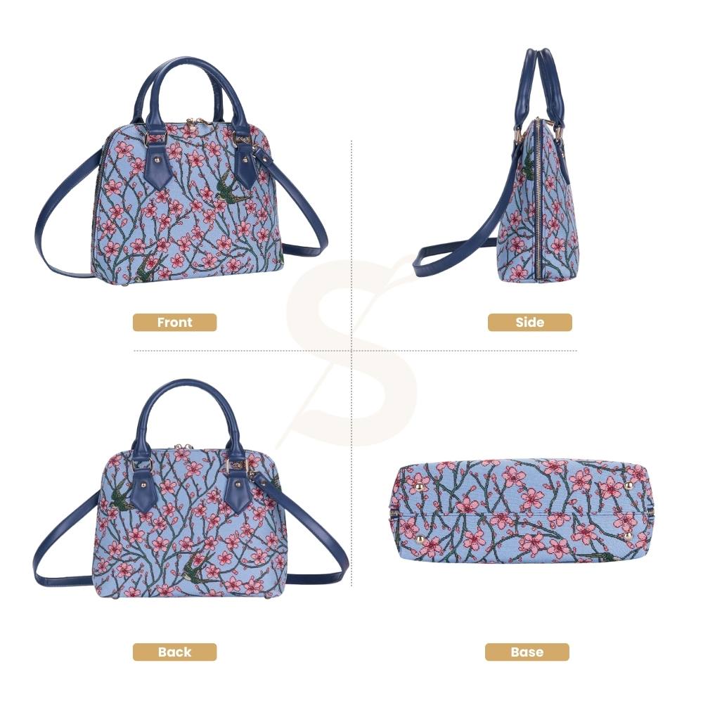 CONV-BLOS | Almond Blossom And Swallow Convertible Top Handle Purse Handbag