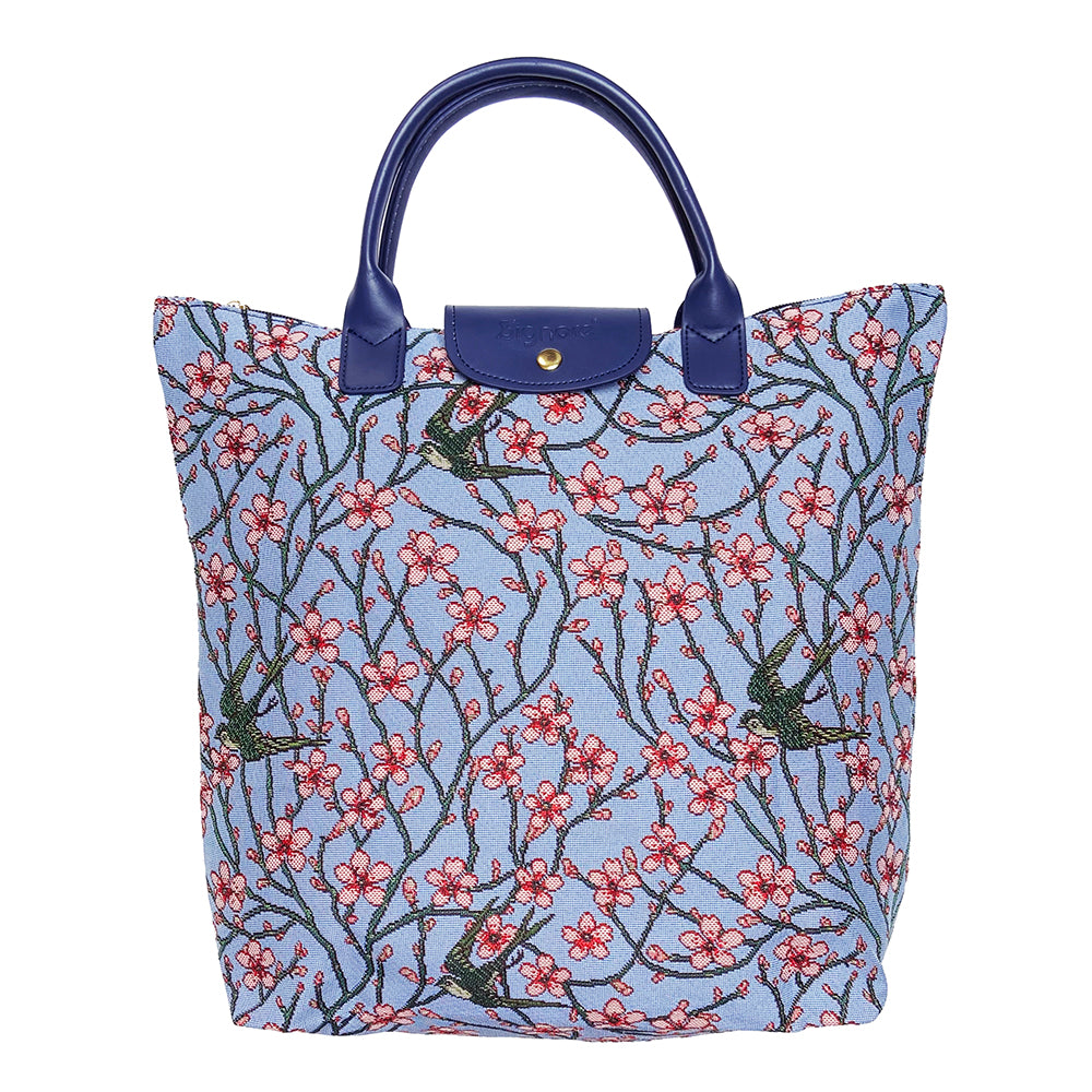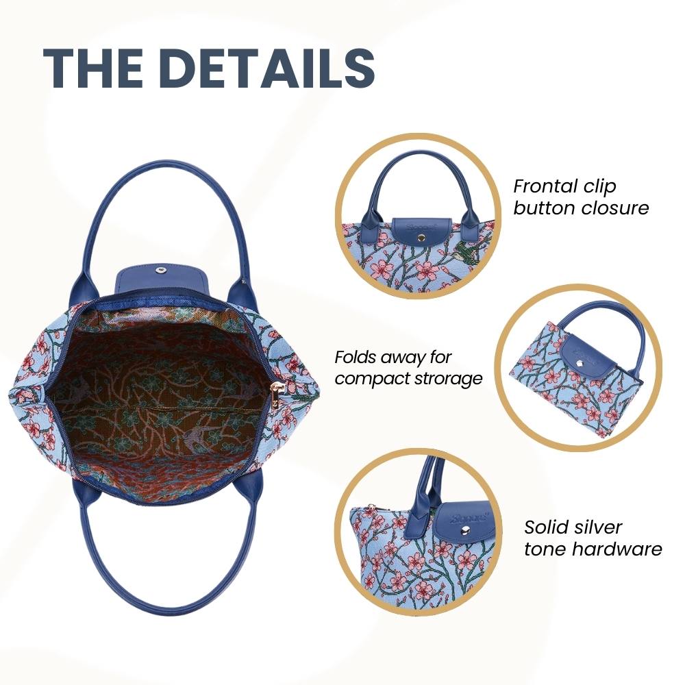 PRODUCT DESCRIPTION: Compact and eco-friendly, portable shopping bag. This tapestry collapsible grocery bag piece opens up to provide ample space for your shopping trips and folds away for easy storage in your handbag