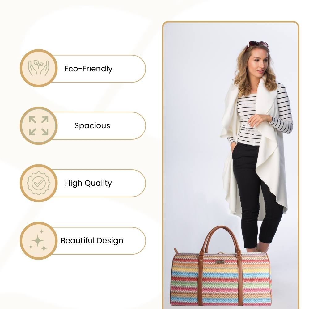 PRODUCT DESCRIPTION:Tapestry duffel bag designed to contain plenty of storage for your travels, this holdall proves to be an ideal choice as a travel companion. Use it on travel, trips, weekend, overnight or even as a sports holdall gym bag.