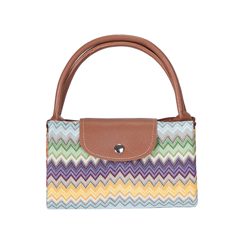 PRODUCT DESCRIPTION: Compact and eco-friendly, portable shopping bag. This tapestry collapsible grocery bag piece opens up to provide ample space for your shopping trips and folds away for easy storage in your handbag