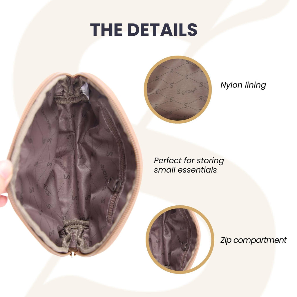 PRODUCT DESCRIPTION: Compartment cosmetic bag/makeup case compactly designed to store cosmetic accessories