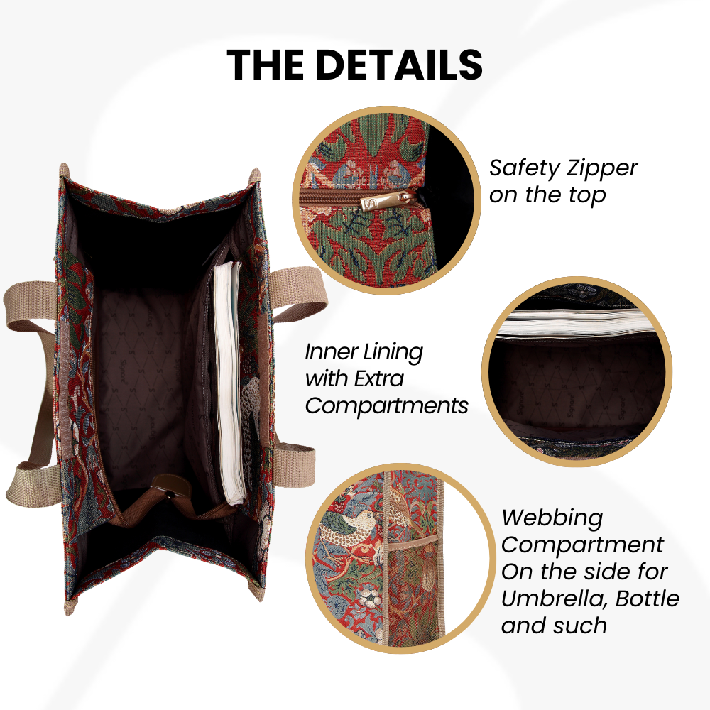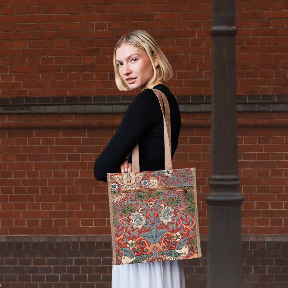 SHOP-STRD | WILLIAM MORRIS STRAWBERRY THIEF RED SHOPPER BAG