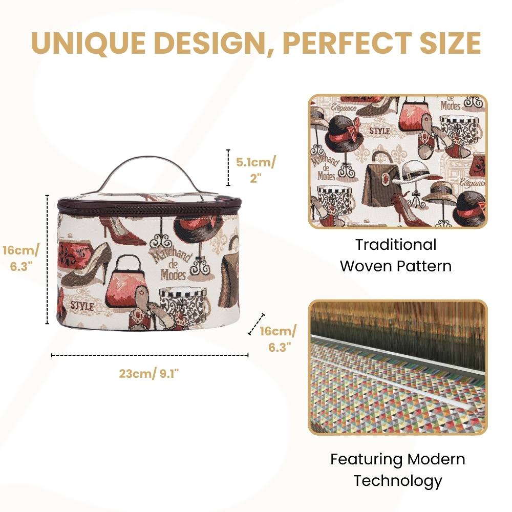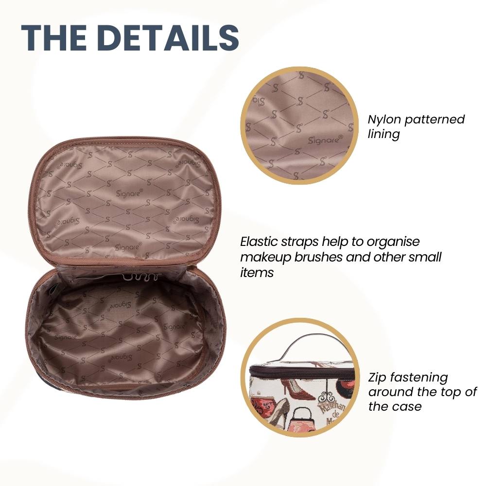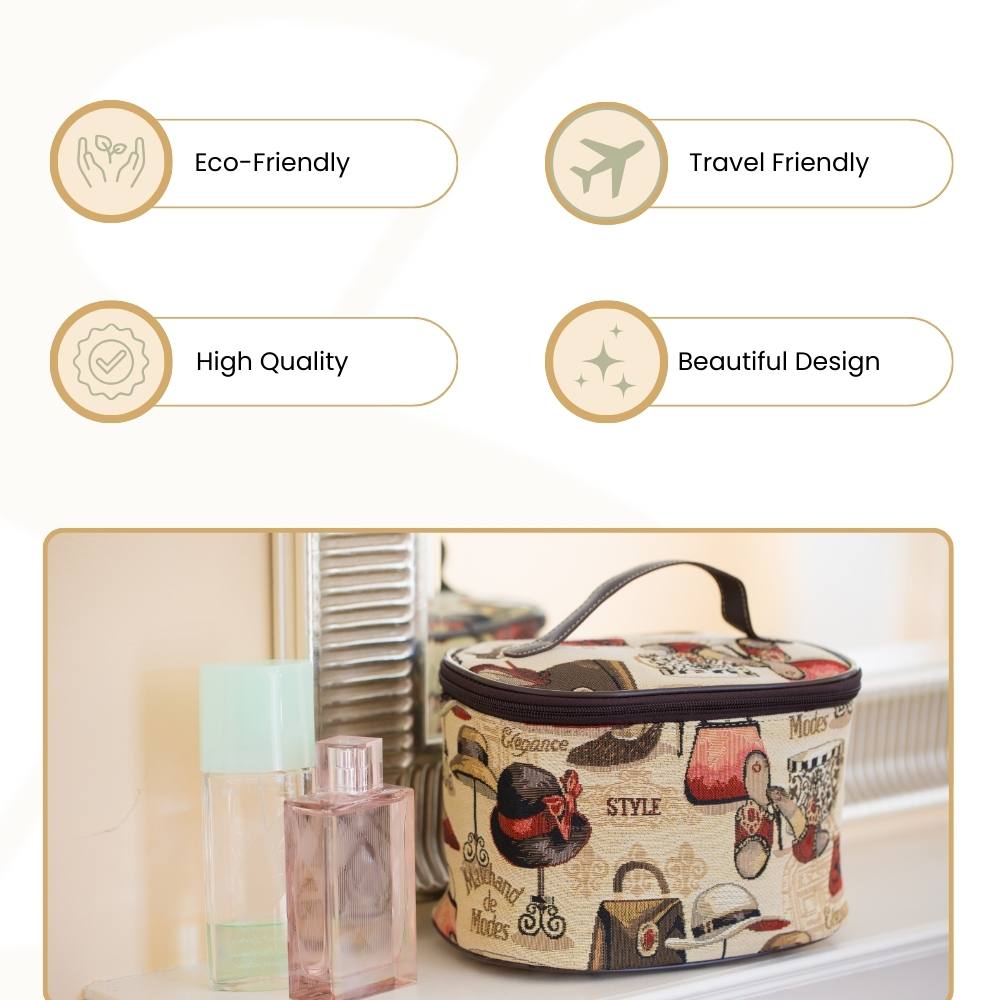 PRODUCT DESCRIPTION: A single layer tapestry beauty bag with a large capacity; ideal for storing toiletries, cosmetics and make-up.