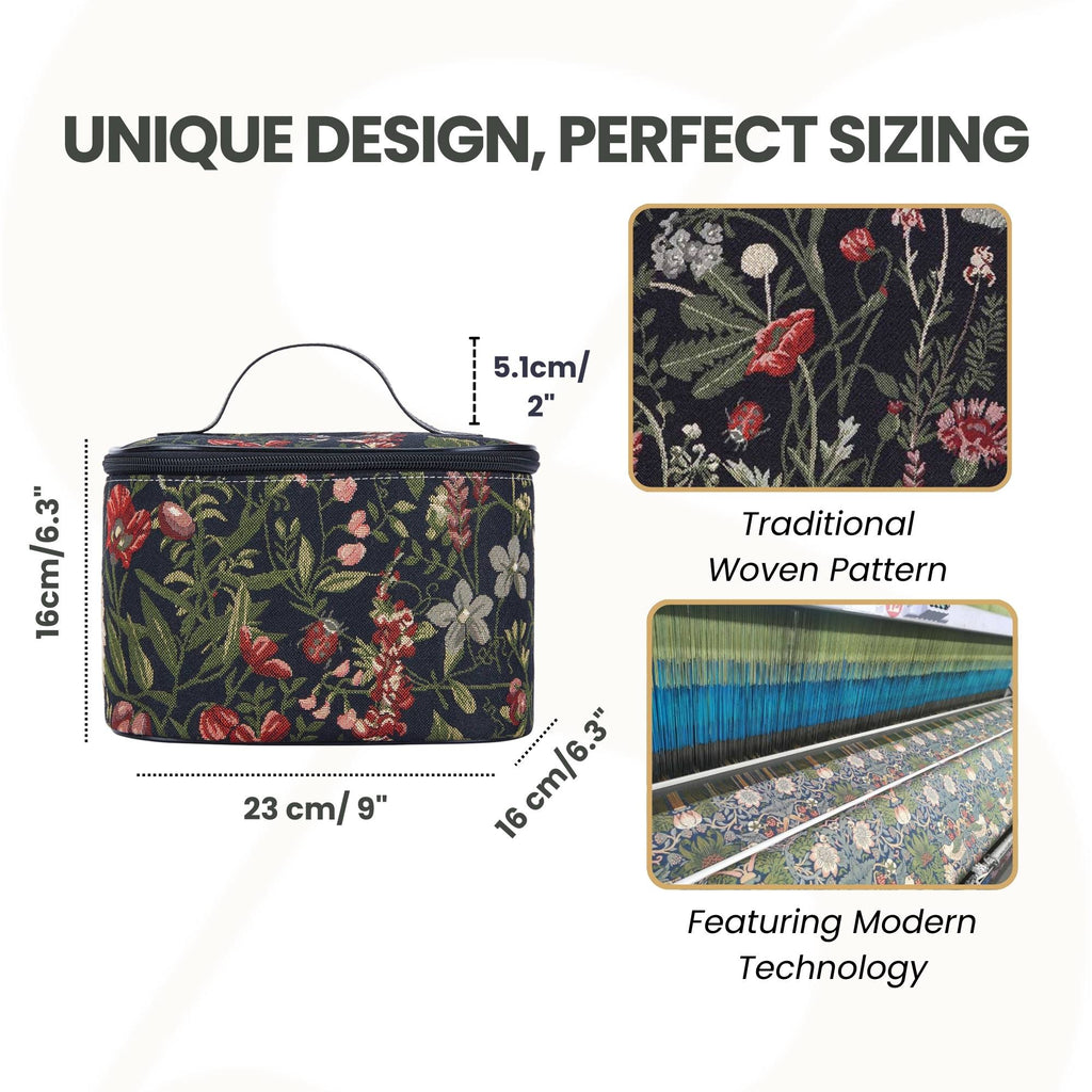 PRODUCT DESCRIPTION: A single layer tapestry beauty bag with a large capacity; ideal for storing toiletries, cosmetics and make-up.