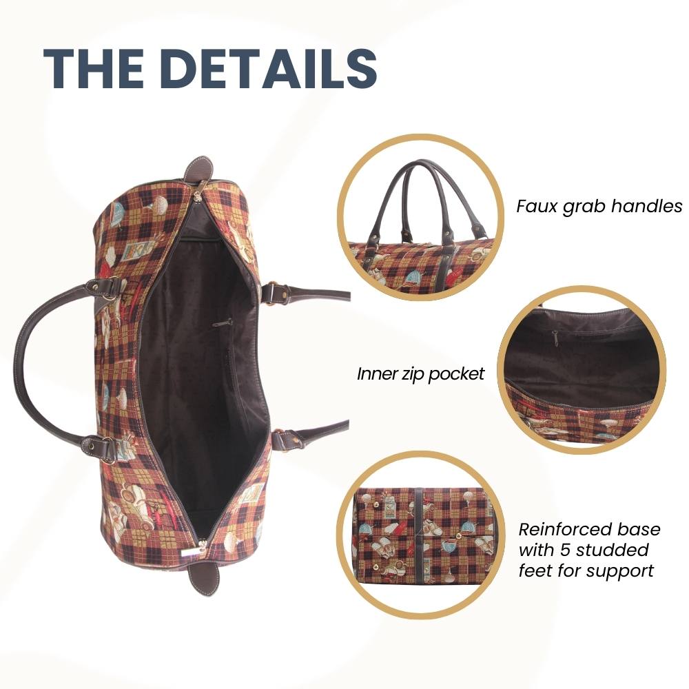 PRODUCT DESCRIPTION:Tapestry duffel bag designed to contain plenty of storage for your travels, this holdall proves to be an ideal choice as a travel companion. Use it on travel, trips, weekend, overnight or even as a sports holdall gym bag.
