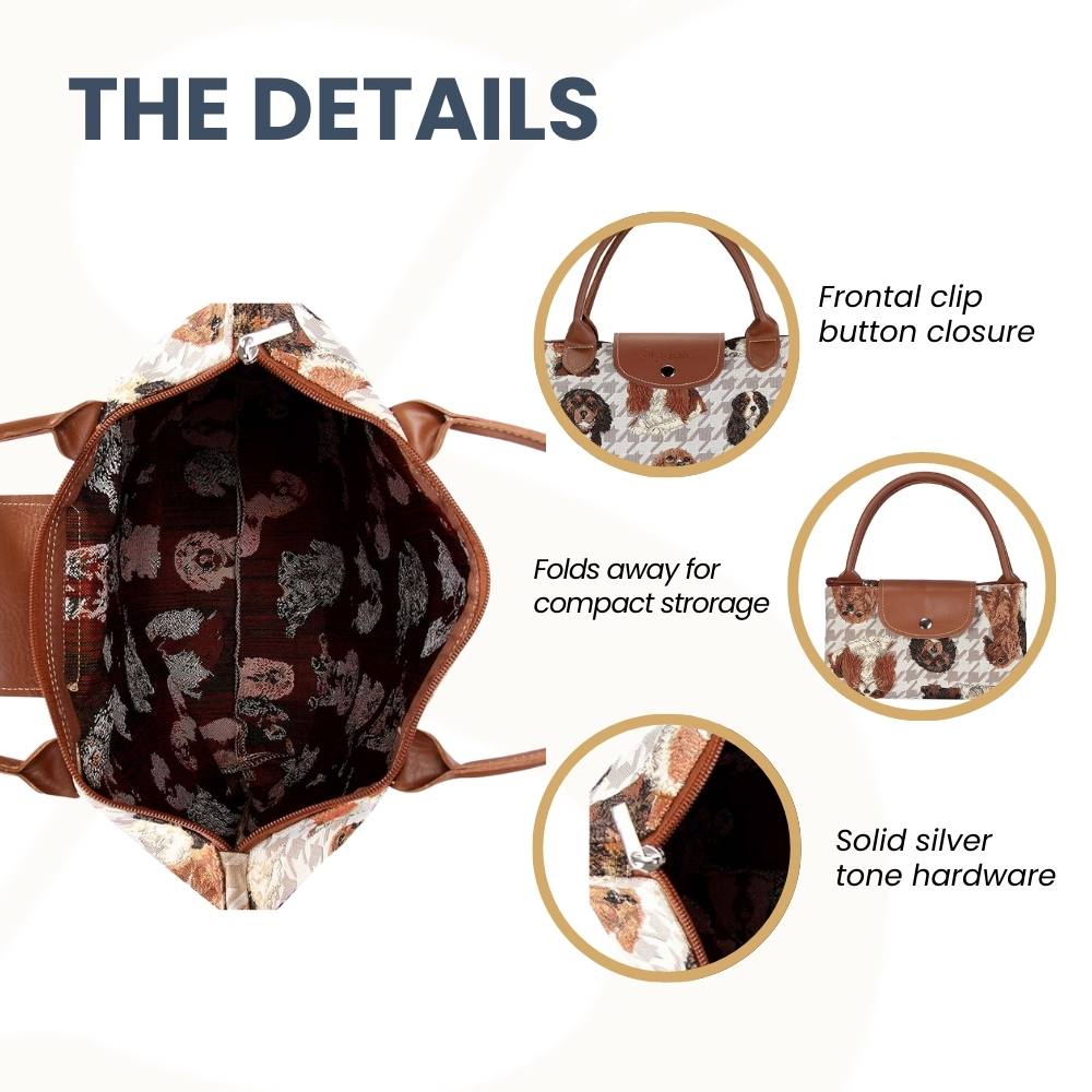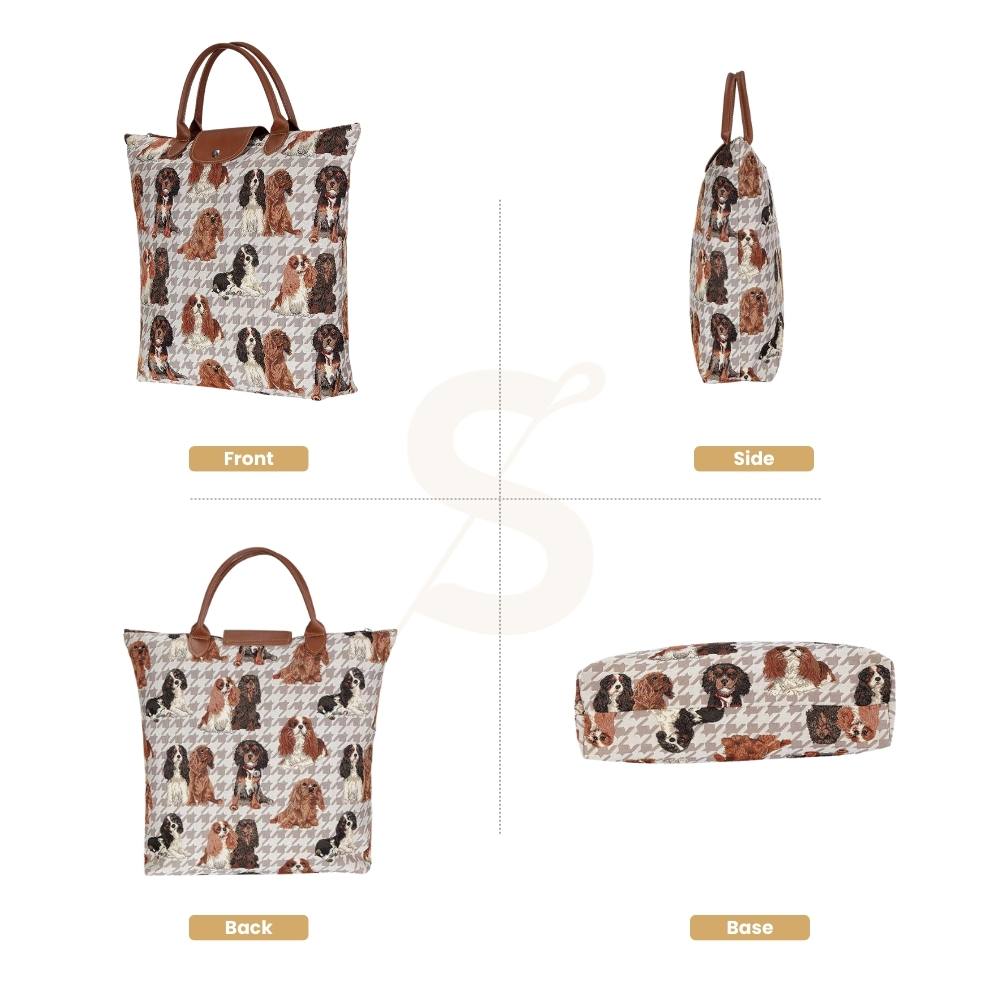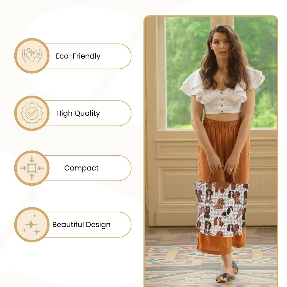 PRODUCT DESCRIPTION: Compact and eco-friendly, portable shopping bag. This tapestry collapsible grocery bag piece opens up to provide ample space for your shopping trips and folds away for easy storage in your handbag