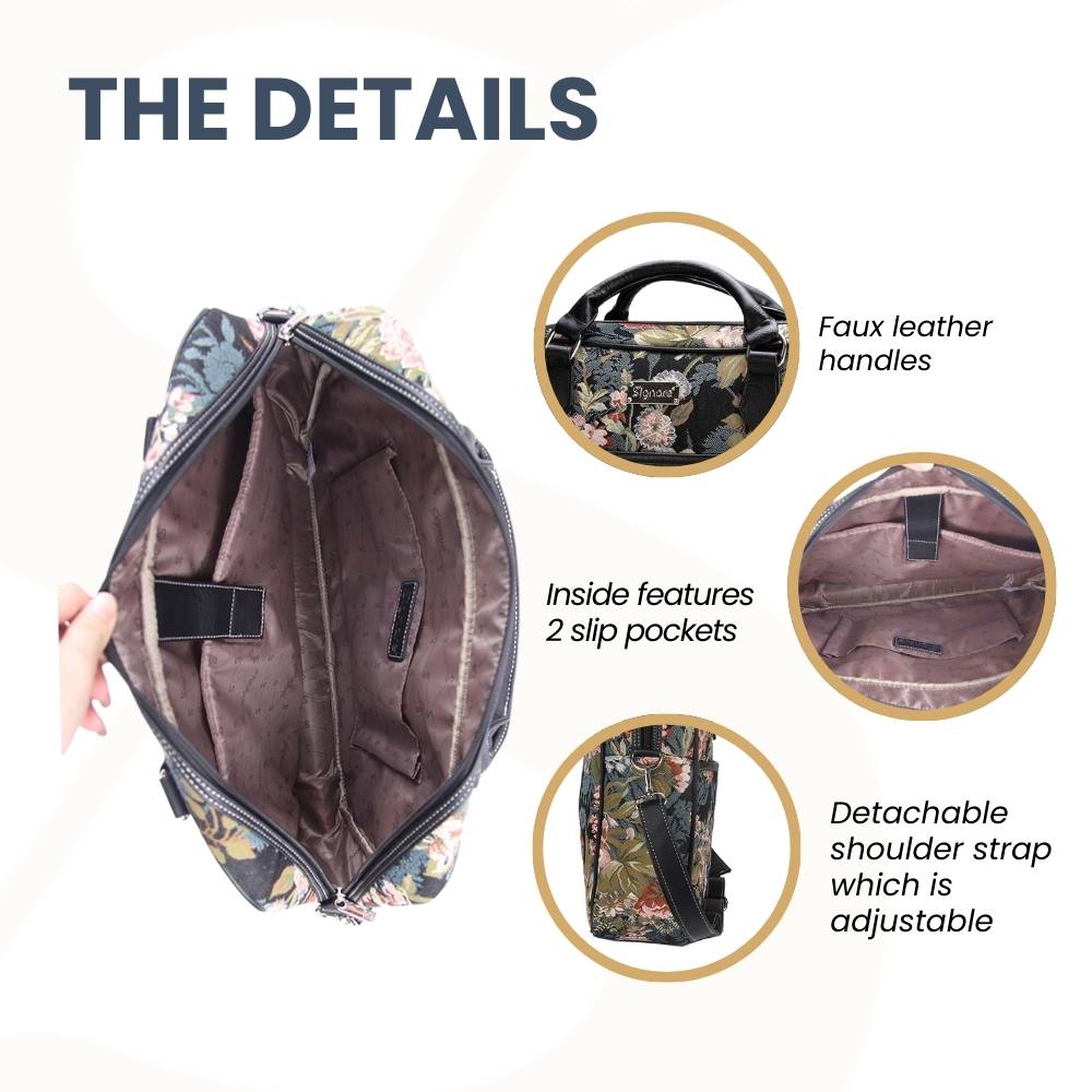 • Also features separate compartments with exclusive pockets for essential items such as your cell phone, files, books, folders, wallet, cards, keys, pens, and stationery to ensure you are fully prepared for your day