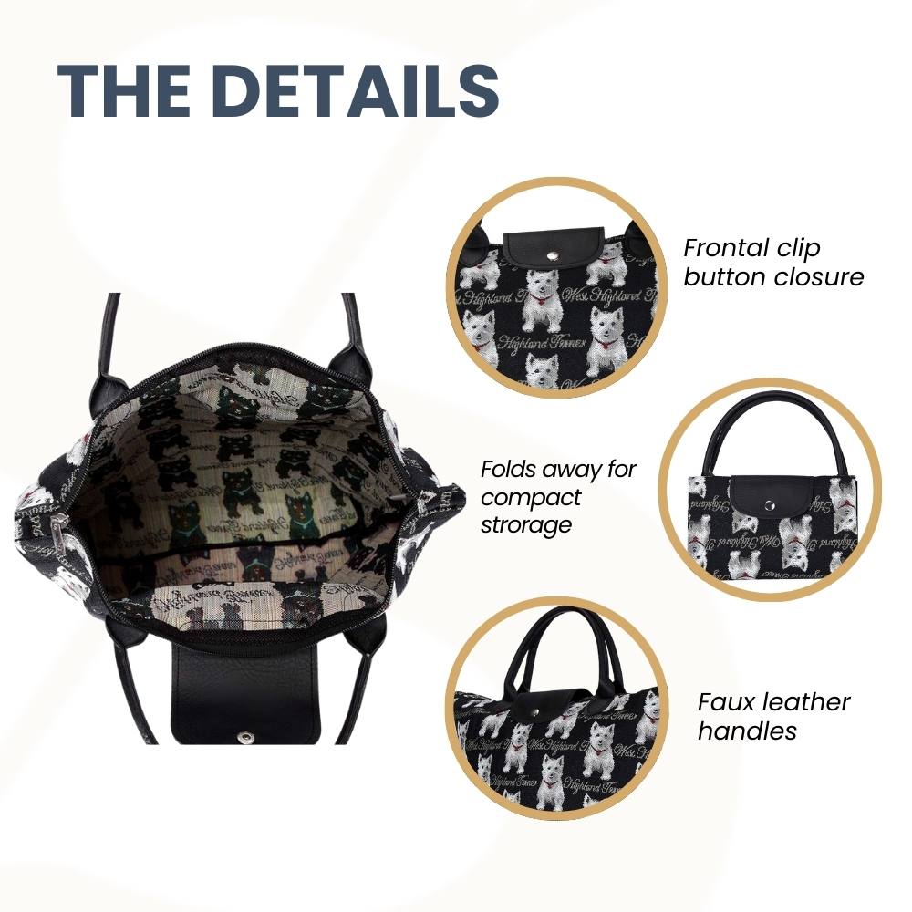 PRODUCT DESCRIPTION: Compact and eco-friendly, portable shopping bag. This tapestry collapsible grocery bag piece opens up to provide ample space for your shopping trips and folds away for easy storage in your handbag