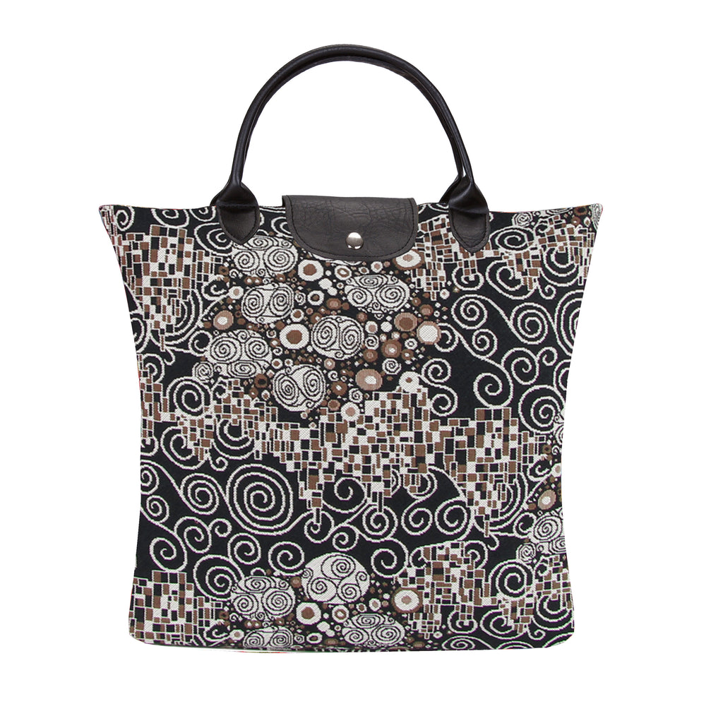 PRODUCT DESCRIPTION: Compact and eco-friendly, portable shopping bag. This tapestry collapsible grocery bag piece opens up to provide ample space for your shopping trips and folds away for easy storage in your handbag