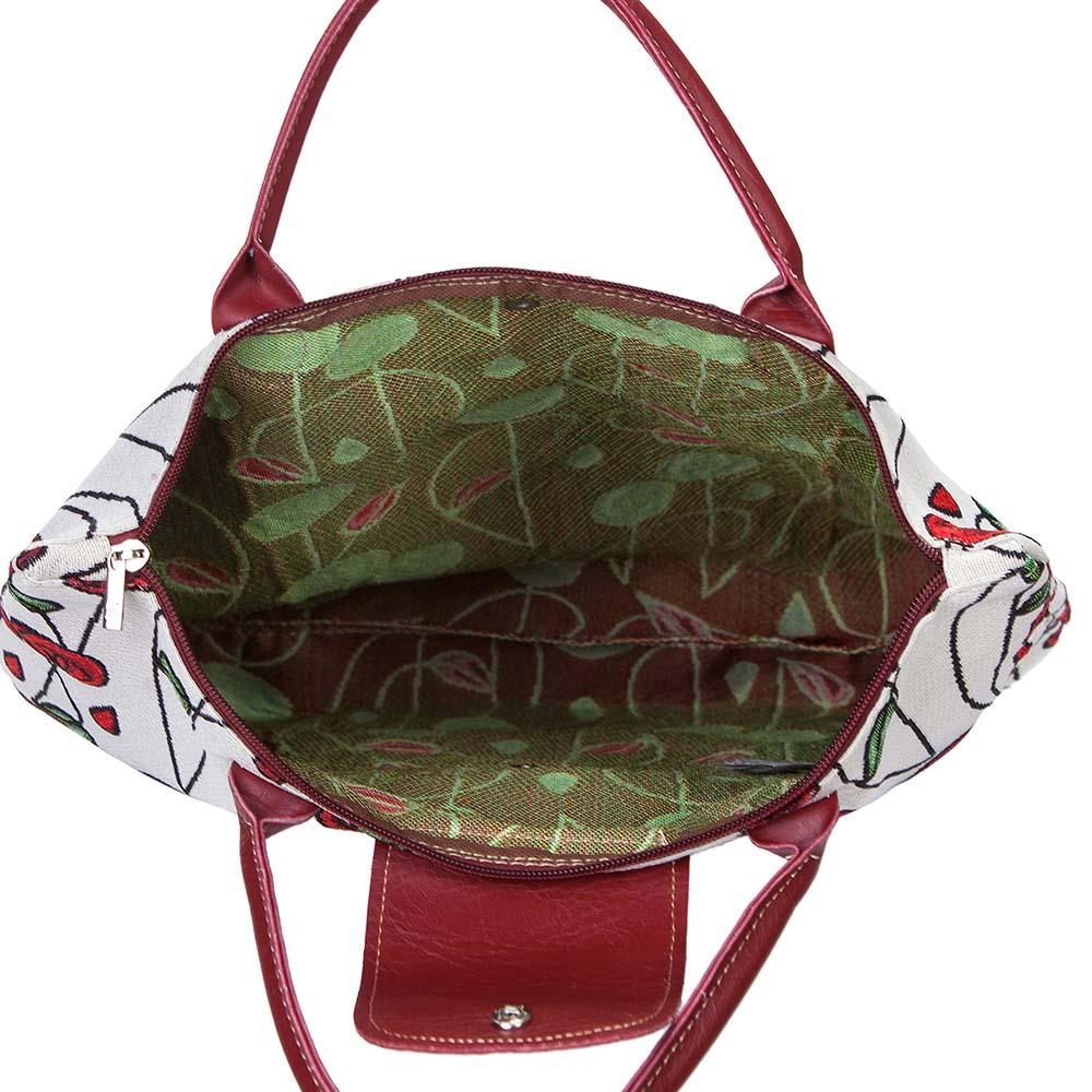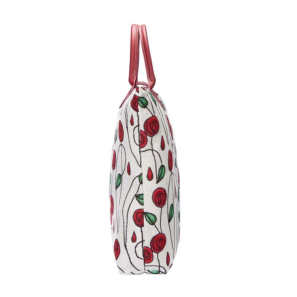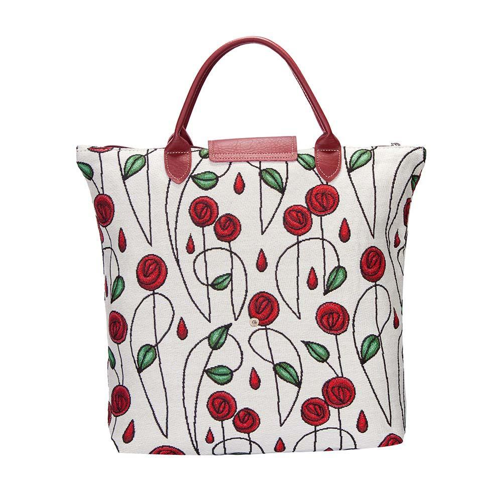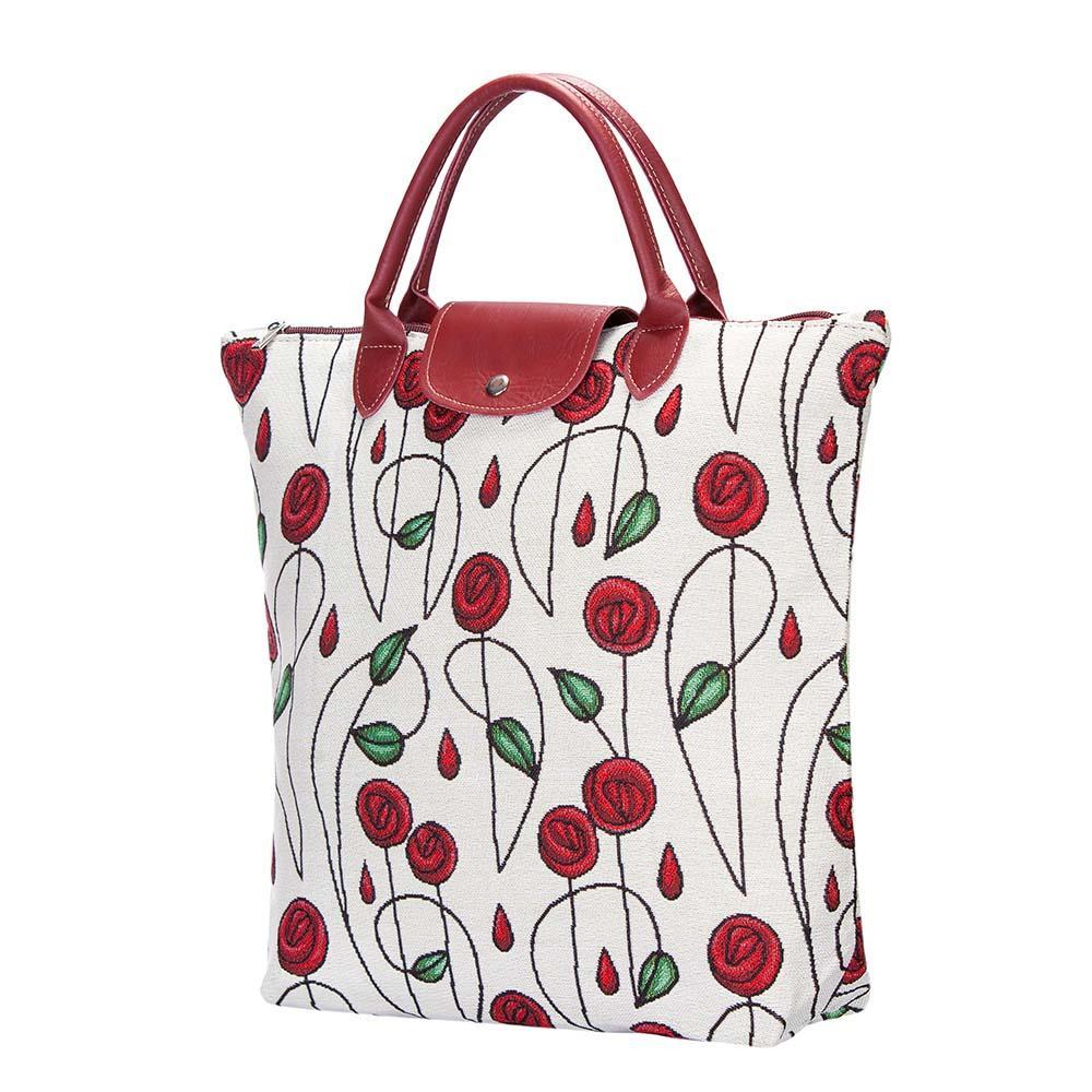 PRODUCT DESCRIPTION: Compact and eco-friendly, portable shopping bag. This tapestry collapsible grocery bag piece opens up to provide ample space for your shopping trips and folds away for easy storage in your handbag