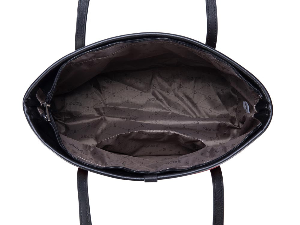 • Faux leather shoulder handles, approx. 11" shoulder drop