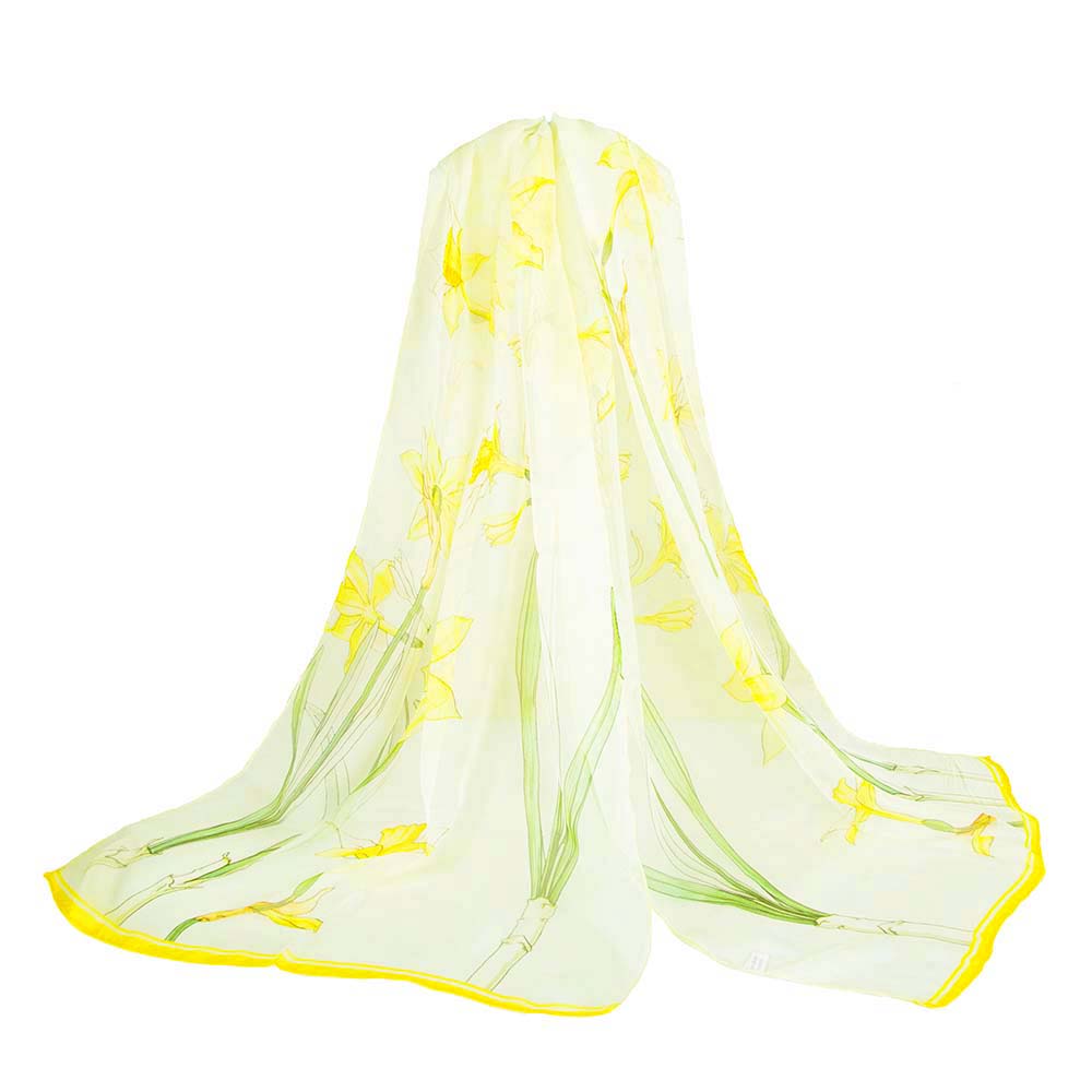 SC-SILK-MPV-DAFF | 100% Pure Silk Scarf Daffodils
