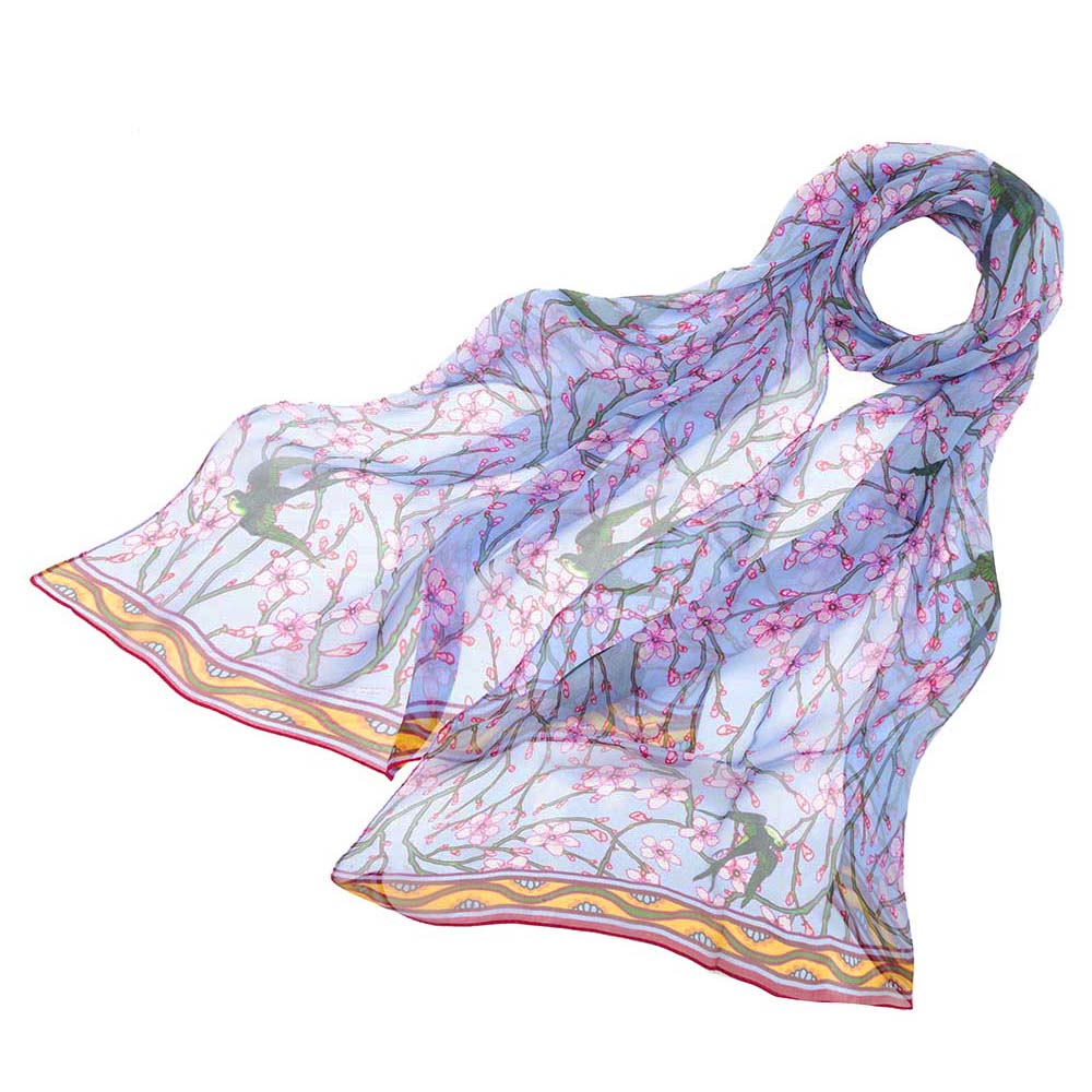 SC-SILK-WC-BLOSSOM | 100% PURE SILK SCARF WALTER CRANE BLOSSOM AND SWALLOW