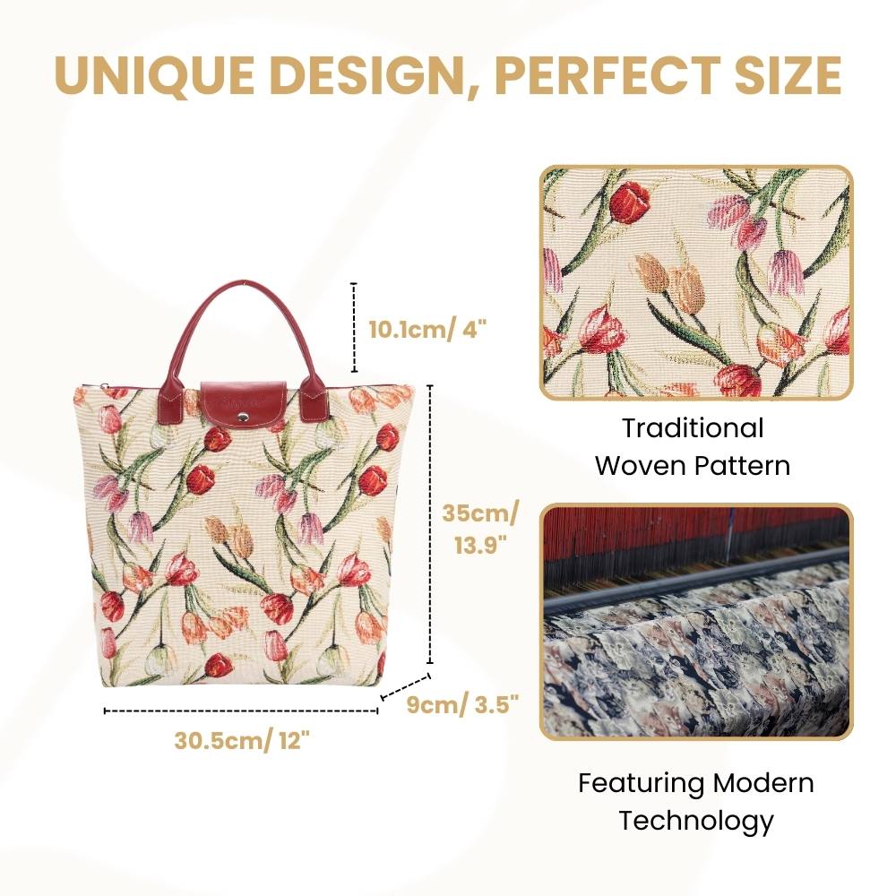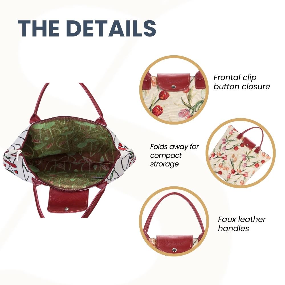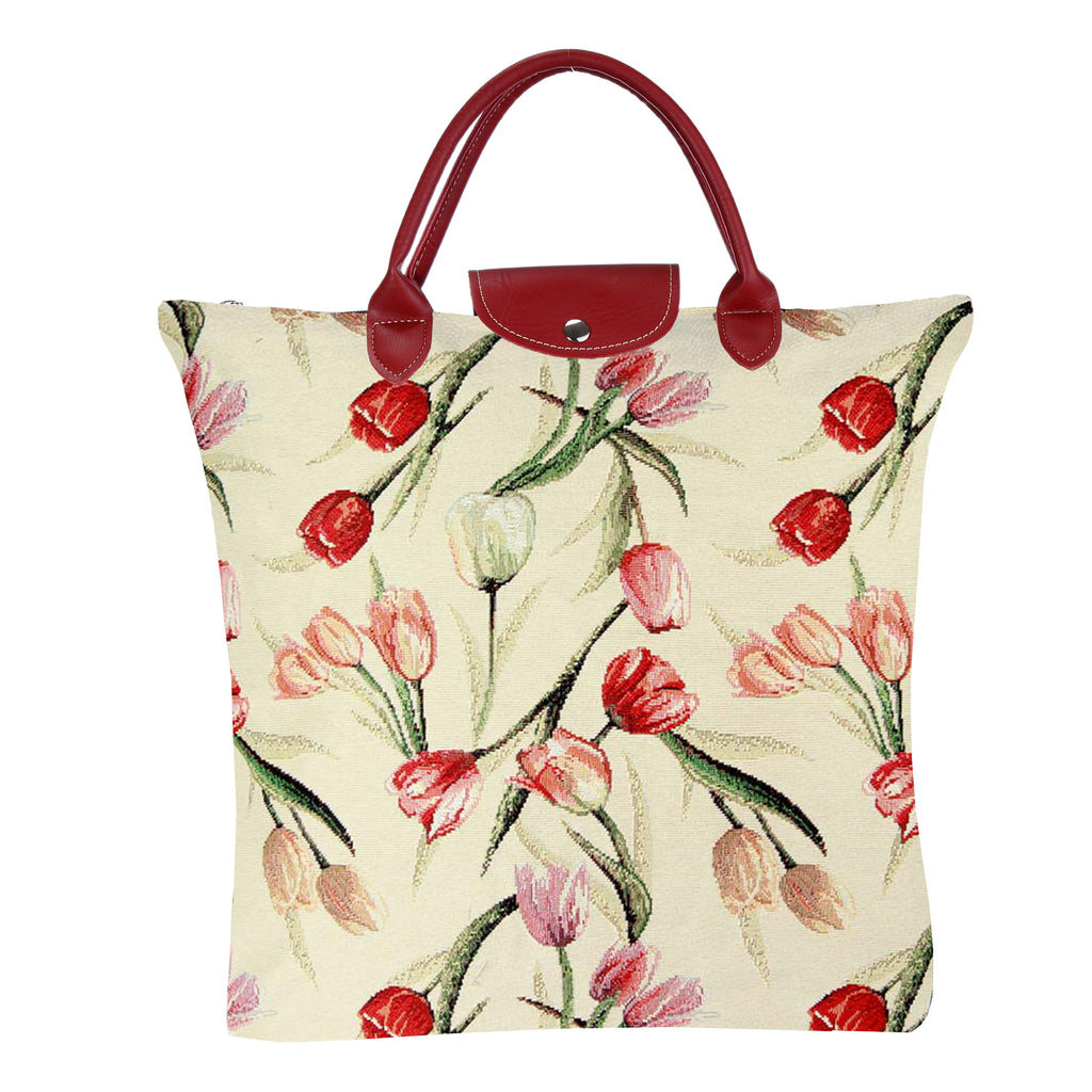 PRODUCT DESCRIPTION: Compact and eco-friendly, portable shopping bag. This tapestry collapsible grocery bag piece opens up to provide ample space for your shopping trips and folds away for easy storage in your handbag
