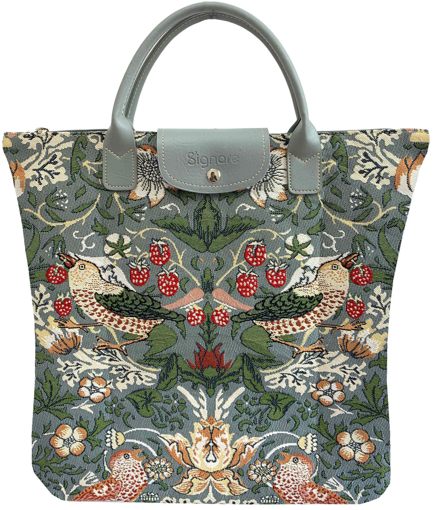 PRODUCT DESCRIPTION: Compact and eco-friendly, portable shopping bag. This tapestry collapsible grocery bag piece opens up to provide ample space for your shopping trips and folds away for easy storage in your handbag
